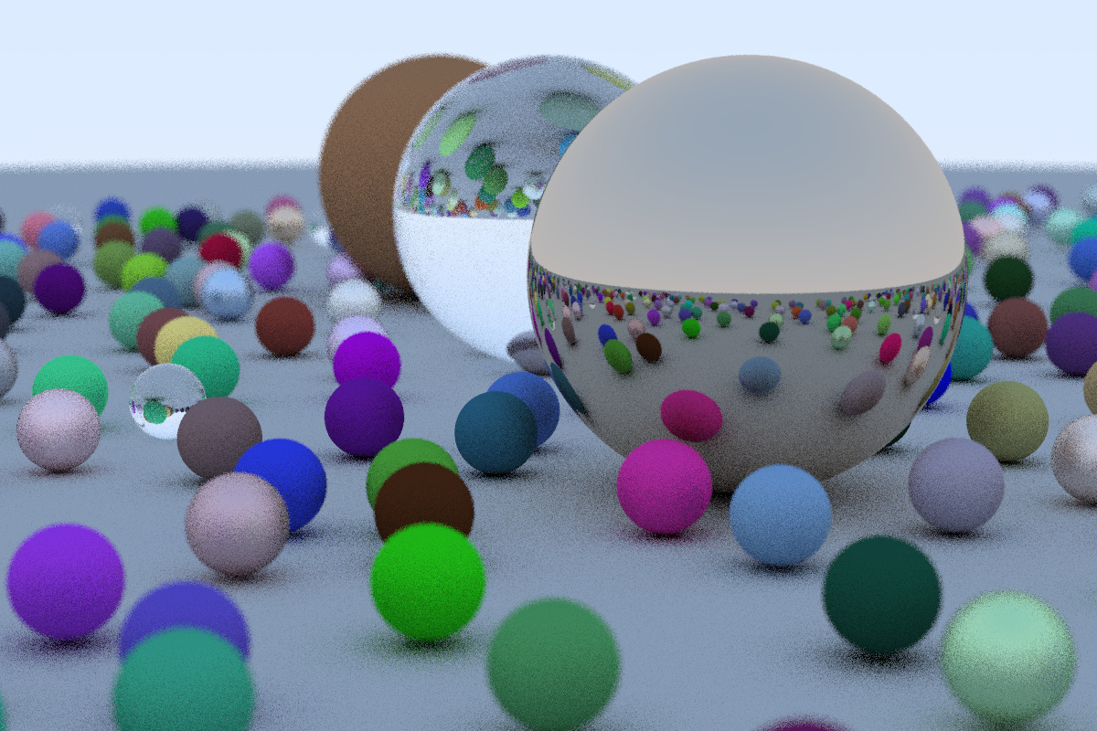 Here the final result, Width: 1200, Height: 800, Sampling: 10, took ~14 mins to render Edit: The above render took ~14 mins because of running on debug mode, take only 3.5 mins on running with --release